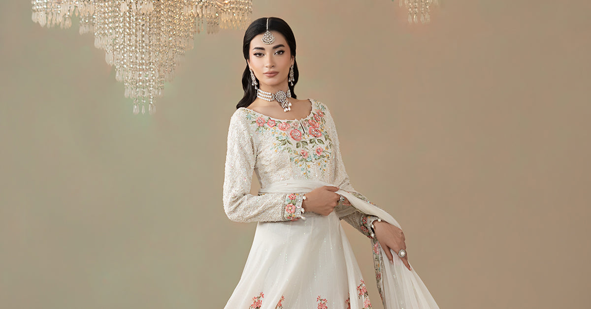 Pearl Detailing On Neckline, Border & Sleeves
