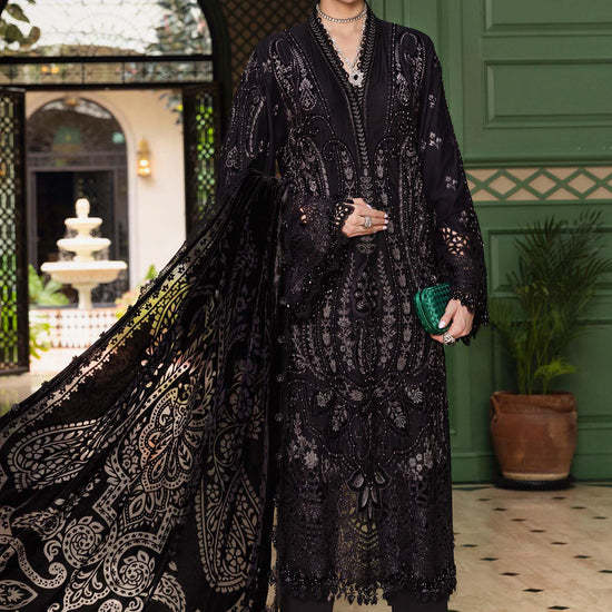 Color: BlackShirtEmbroidered Velvet Neck Patti With PearlsEmbroidered Linen Center Panel With Velvet Applique & PearlsEmbroidered Linen Side Panel R+L With Velvet Applique & PearlsEmbroidered Organza Ghera PatchEmbroidered Linen Sleeves With Velvet Applique & PearlsEmbroidered Organza Sleeves PatchDyed Linen BackTrouserDyed Linen TrouserDupattaDyed Palachi DupattaNote: Dry Clean Only