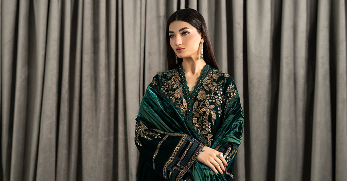 Embroidered Sleeves With 3D Flowers & Pearls Detailing